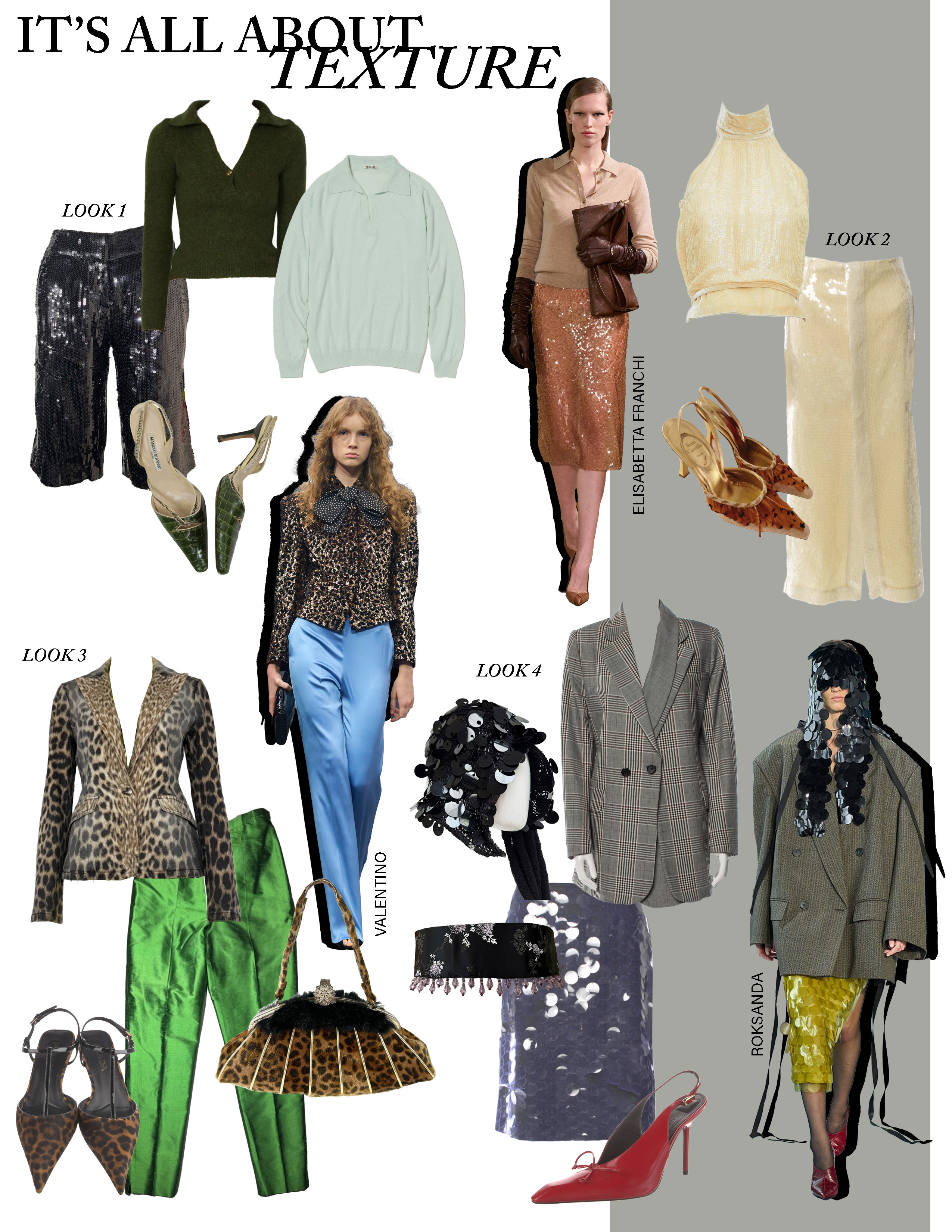 And we are reaching the peak of our class now - tension up everyone. We are in full sprint mode. Get up out of that seat. Things are getting crazy. Sprints are no joke, and neither are sequins. This is a very serious matter. Hear me when I say this: sequins are very important. Feeling sad? Sequin. Feeling fun? Sequin. Feeling existential? Sequin. I strongly believe that sequins are daywear, but if you are not in my sequin camp, please see below. You can style sequins casually if you believe. Or not, it’s up to you. But Look 1 is a great example if you’re just venturing into sequin land - the casual cut of the shorts, the layered polo collars. Already firmly in sequin land? Look 4 might be more up you alley. Whatever the case, we are pushing the limits of our wardrobes now. So lean into it and have fun. And don’t be afraid to go the extra bit further with your layers and accessories. Coco Chanel said take one thing off? I say put two things on. It’s the holiday season, when else will you be able to do this? (Myself, everyday. But I’m dramatic.)