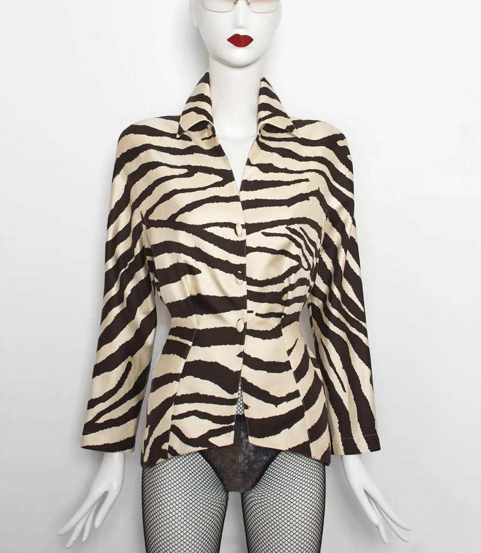 And we have reached the final stretch of the class. Depending on your comfortability among the animal prints, feel free to 1. cool down, or 2. amp it up for one final hill. If you, like I, see animal as a neutral, you’ll be good to coast. If you don’t, this might be more of a challenge. But you do not need to be afraid. Pair a leopard with a black skirt. Pair a zebra with mint green. Sequin cheetah is always a safe bet with a black pant. And the easiest way to involve animal print? A vintage fur coat or a calf hair midi skirt. Both of which I have included below. So, feel free to close out the class how you see fit. We will have time at the end to stretch.